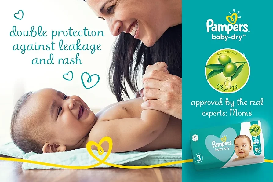 تقنية الامتصاص الفائقة: تحتوي حفاضات بامبرز بيبي دراي على طبقات امتصاص متعددة تضمن بقاء بشرة طفلك جافة طوال اليوم.